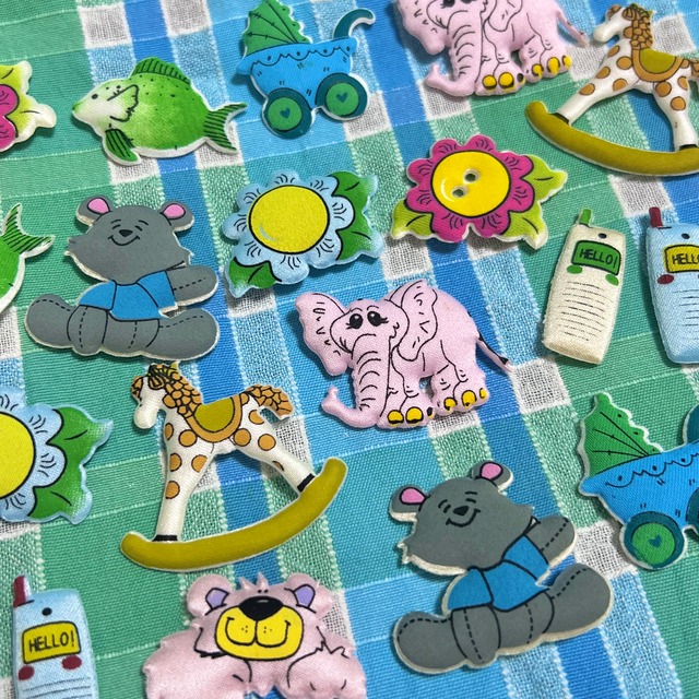 1枚売り クッションアップリケです! 指で軽く押すとふにふにした感触が気持ちいい! 接着剤か、縫いつけでくっつけるタイプです バッグやポーチ、お洋服などのワンポイントに♪ ヘアピンなどのアクセサリーパーツをくっつけてアクセサリーとして使ってもいいですね! アイデア次第でなんでもかわいくなっちゃいます! ☆☆☆☆☆ 背景に使用しているチェック柄の 細いラインが1センチ 太いラインが2センチなので サイズのご参考にしてください! プリントに個体差があること、ご了承ください アップリケ ワッペン 縫いつけ 飾り パーツ デコ 手芸 レトロ 布 ハンドメイド くま ぞう 木馬 魚 ベビーカー ガラケー おはな 材料 手芸 洋裁
