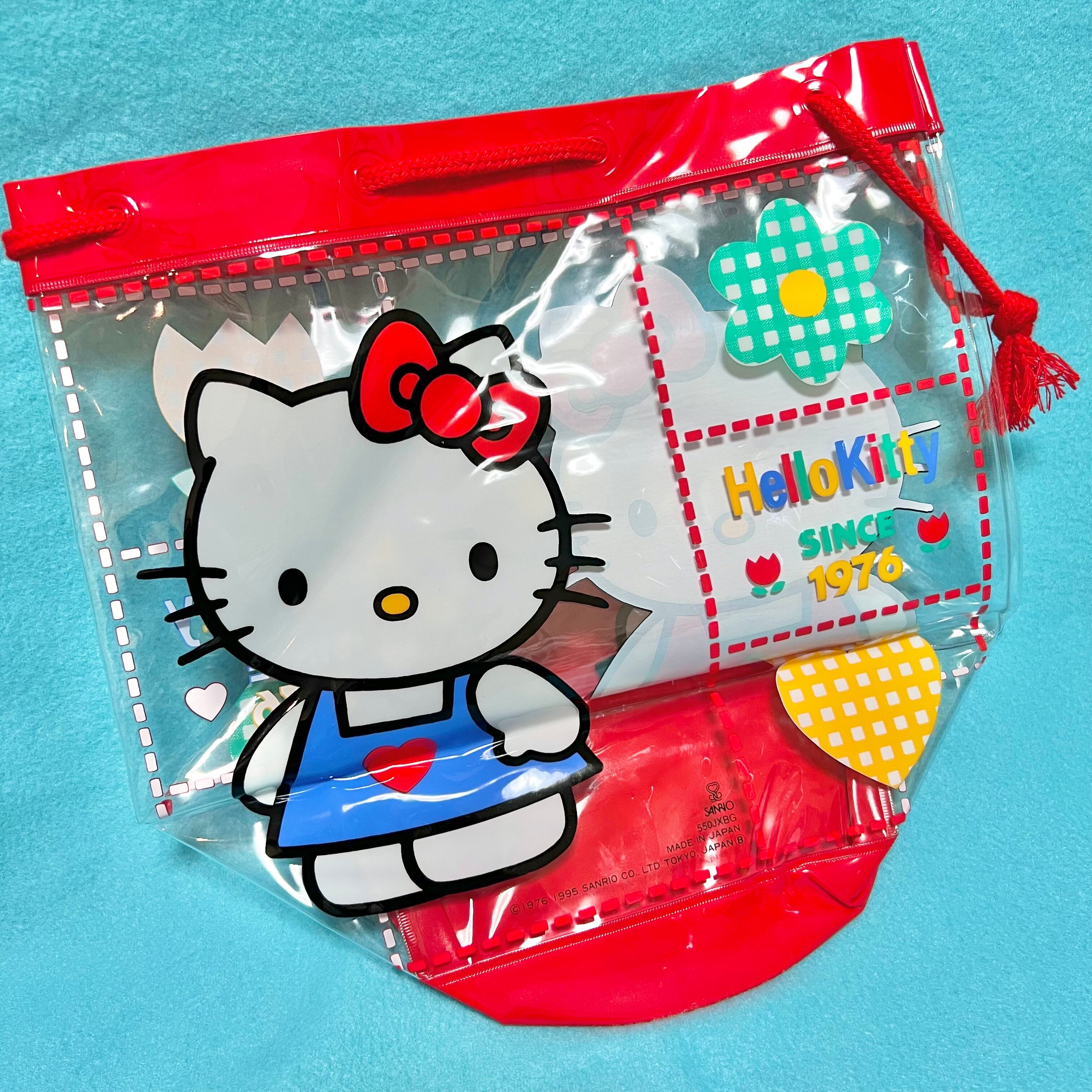 レトロ サンリオ キティ 当時物 バッグ プール ビニール 透明 かわいい 海 赤