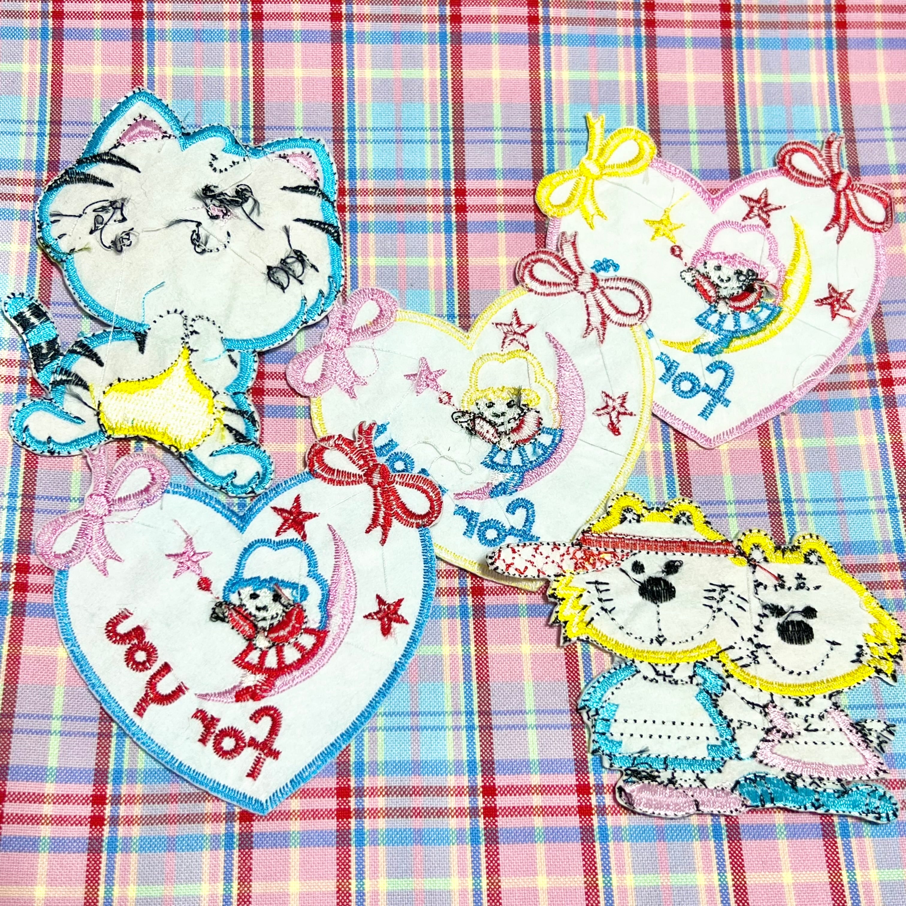 ワッペン アップリケ 刺繍 昭和レトロ かわいい カラフル ねこ 天使 レトロ