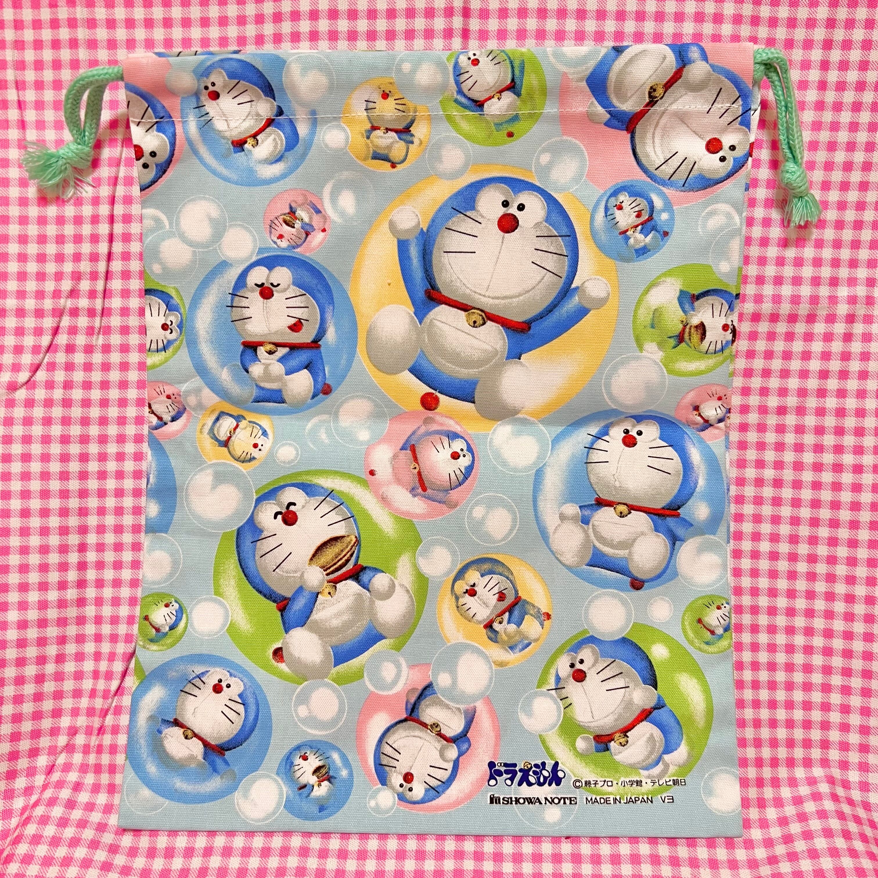ファンシー レトロ 昭和 平成 ドラえもん 3D 立体 ショウワノート Doraemon 泡 バッグ 巾着 ポーチ 入れ物 布 生地 アニメ 当時物