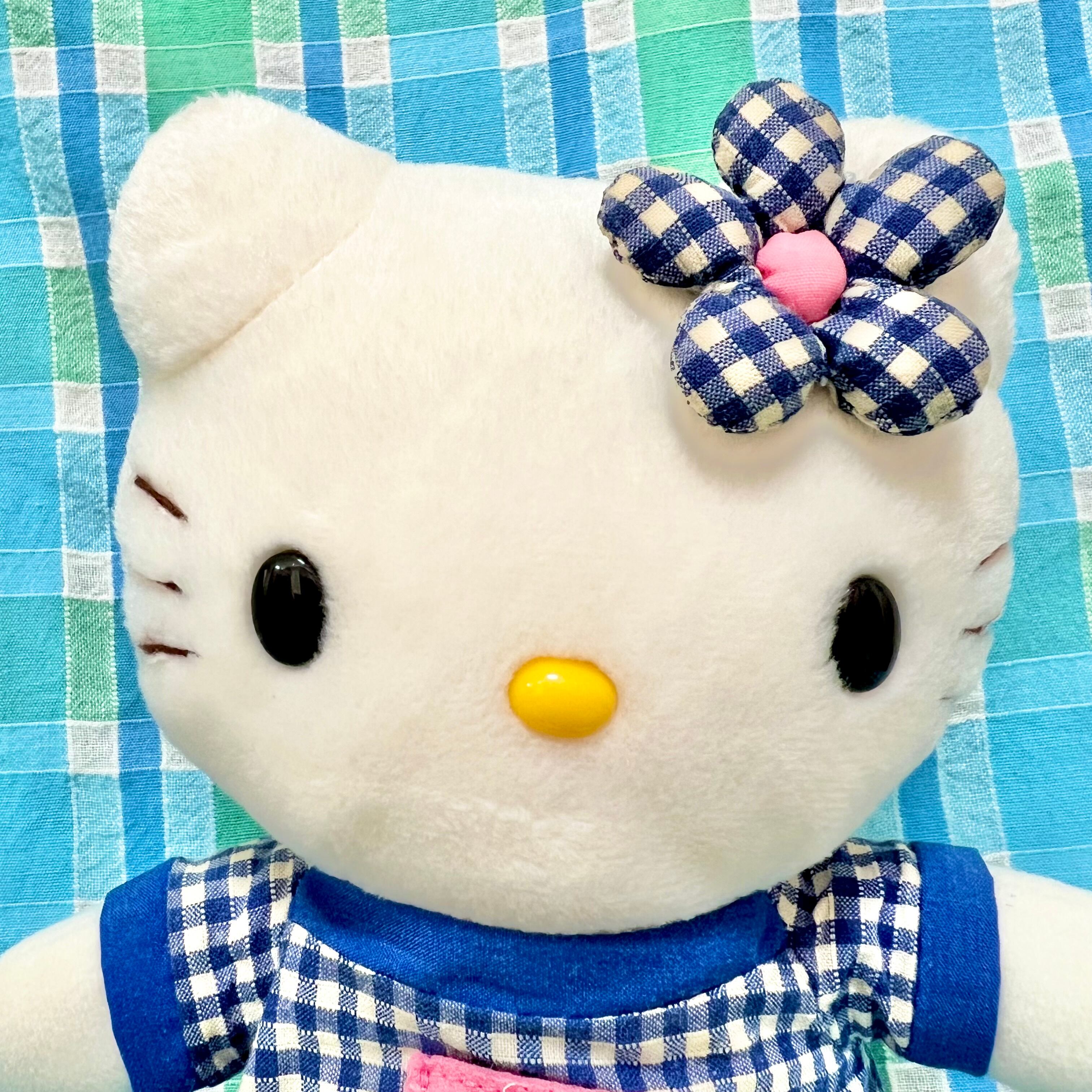 ハローキティ キティ Kitty サンリオ sanrio hellokitty 平成レトロ オレンジ プライズ 非売品 ぬいぐるみ 初期 当時物 青 カオハナ チェック 景品 ファンシー ビンテージ vintage