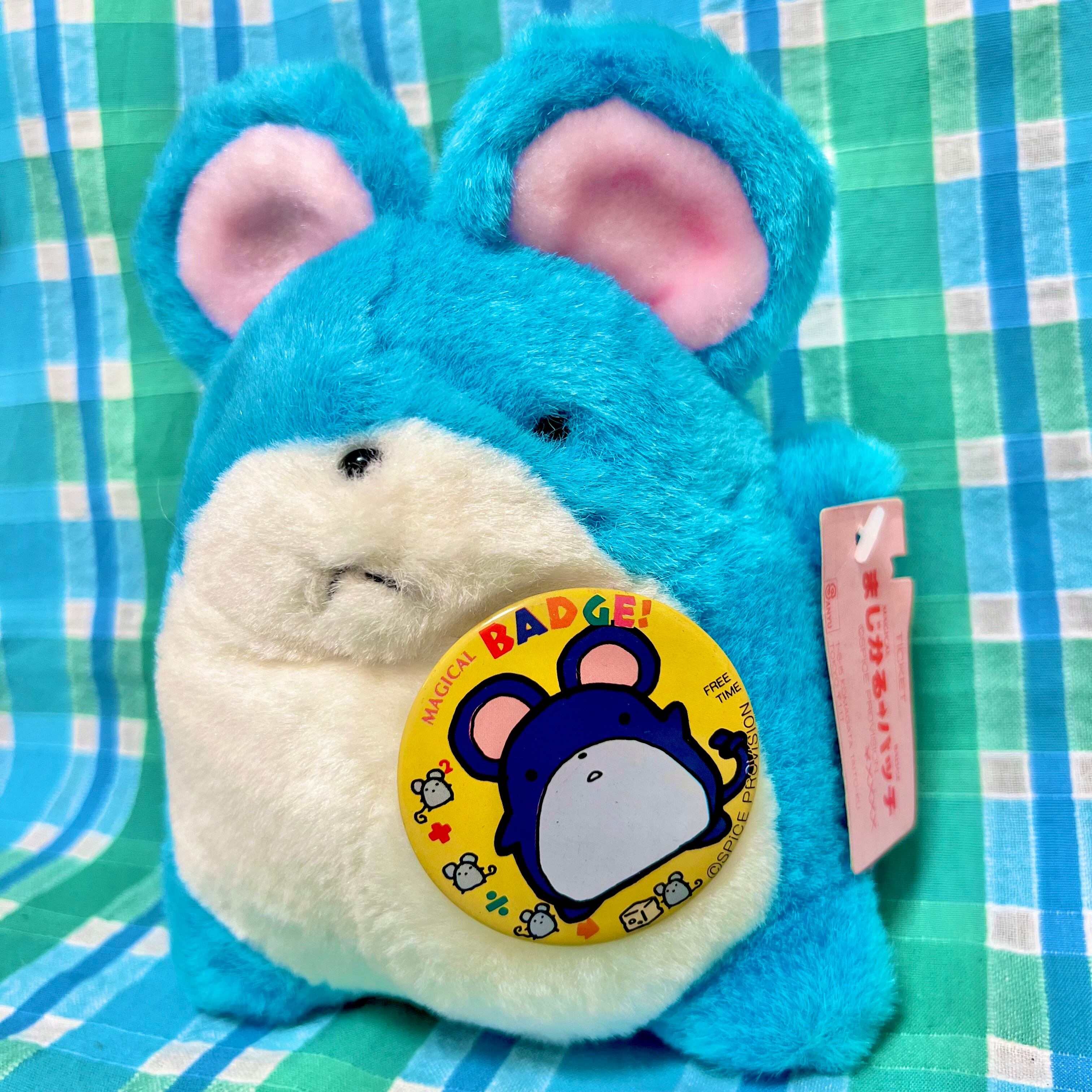 平成レトロ バッチ ぬいぐるみ レトロ ファンシー マリル ねずみ 青 水色 動物 どうぶつ 雑貨 昭和 平成 Badge メルヘン