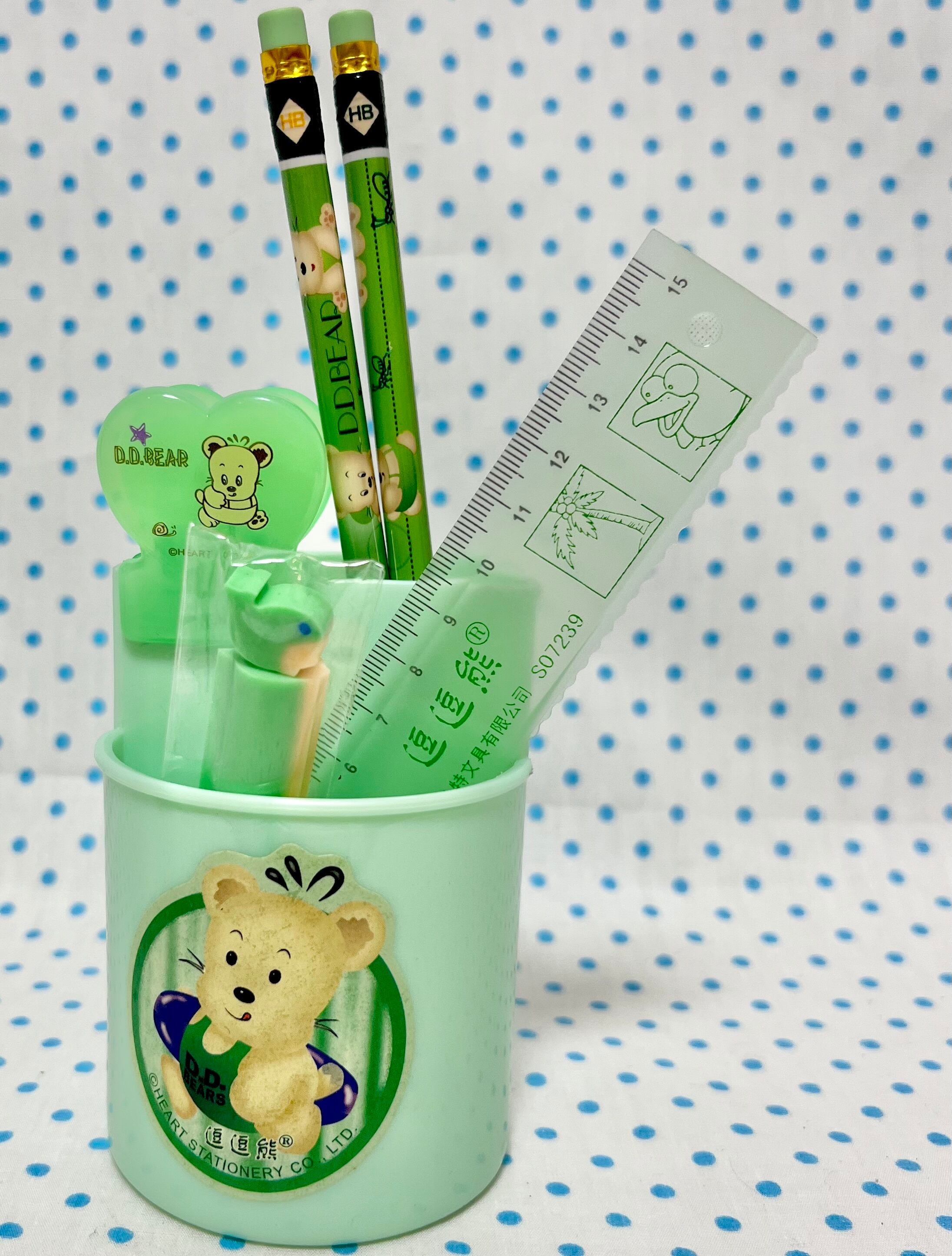 昭和レトロ レトロ 中国 くま 逗逗熊 雑貨 文房具 セット 緑 ファンシー 未使用 かわいい 定規 鉛筆 消しゴム くじら