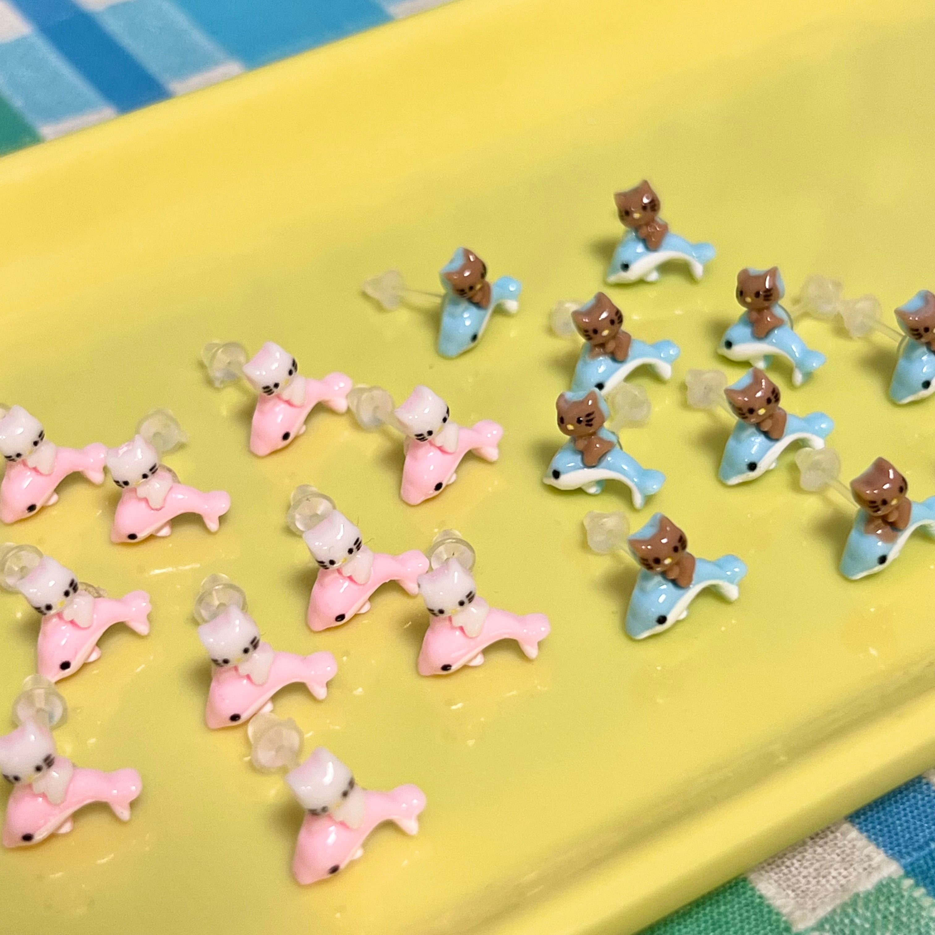 いるか ねこ ピンク 水色 ギャル アニマル どうぶつ 動物 ピアス 樹脂 かわいい アクセサリー サブカル 耳 個性的 ファンシー カラバリ カラー 平成レトロ ダサカワ